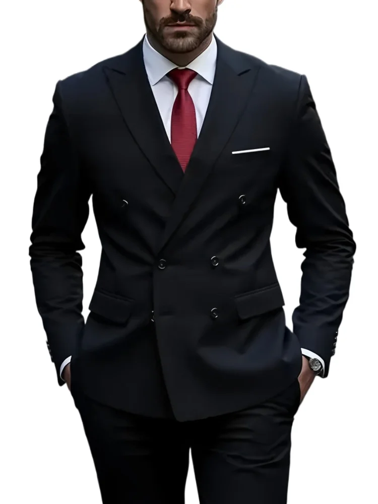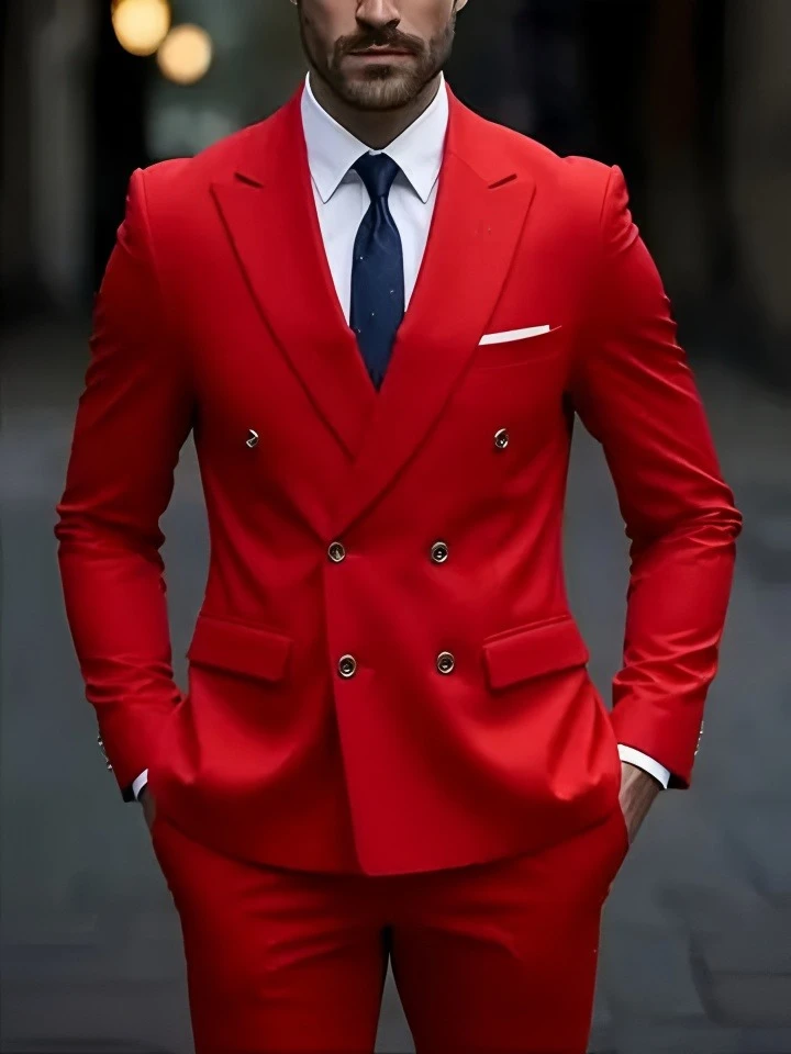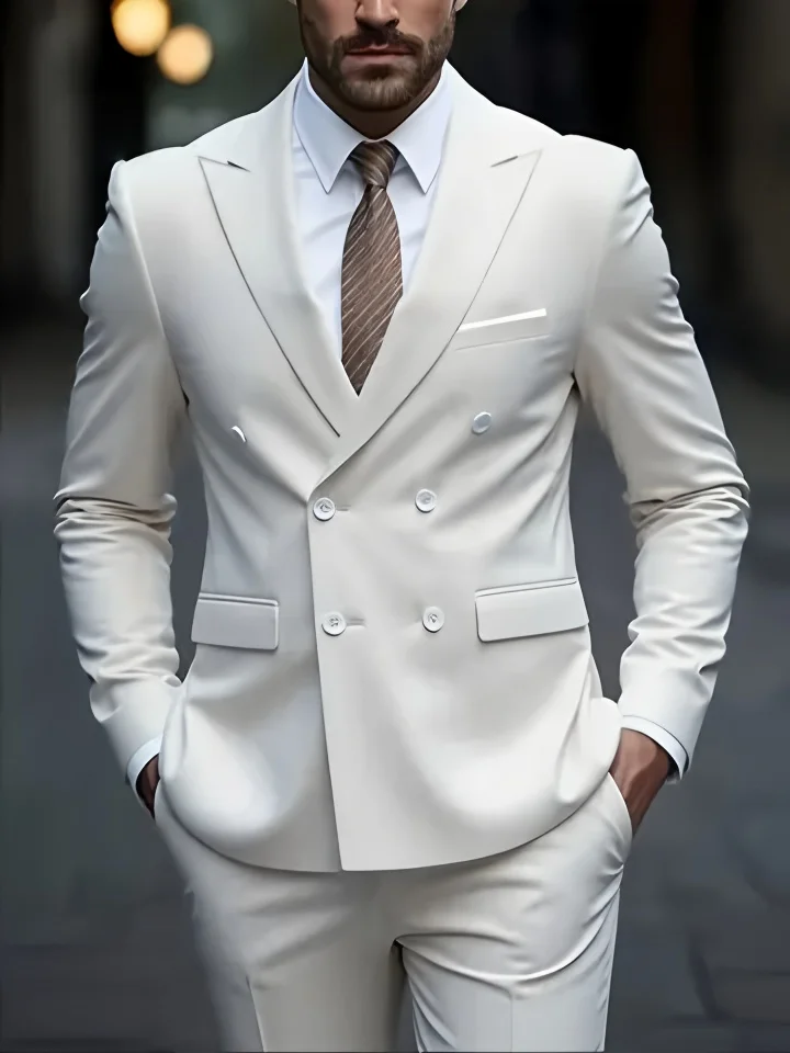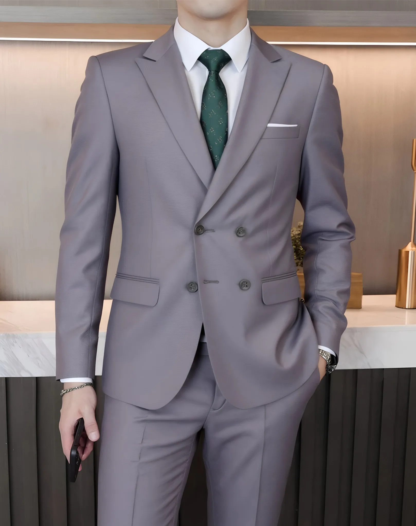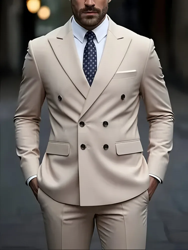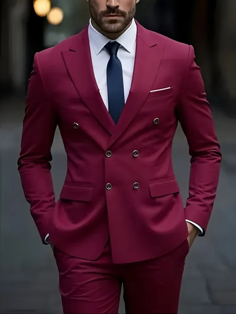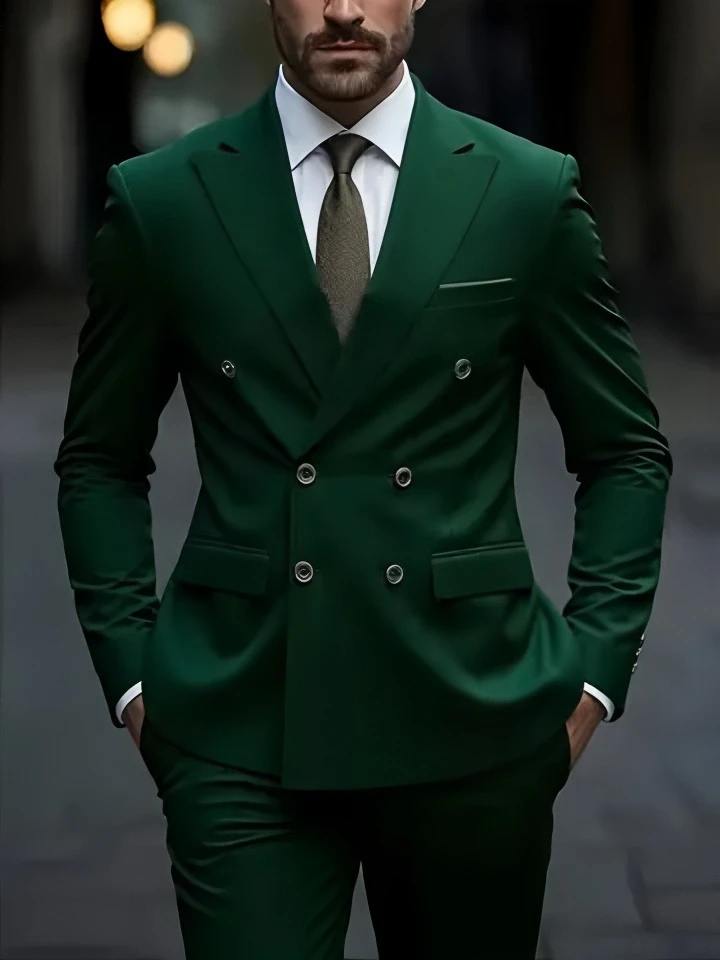 Home product Fashion New Men Double Breasted Boutique Solid Color Business Slim Fit Groom’S Office Wedding Best for Man Work Dress Suit