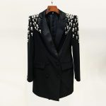 K043 Women’s Fashion Handmade Beaded and Rhinestone Slim Long Blazer