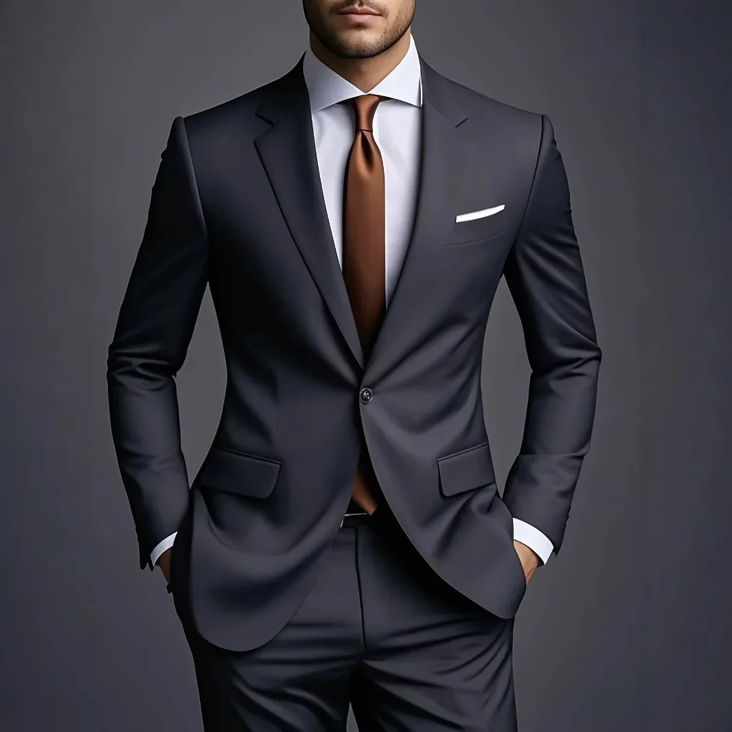 New (Blazer+ Pants) Men’s Fashion Business Gentleman Trend Slim-fit Casual Wedding Travel Plus-size Solid Color Suit