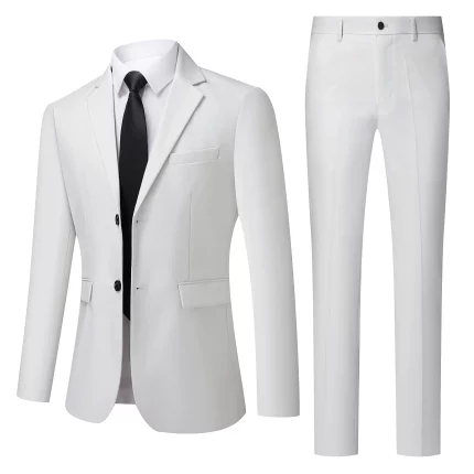 Men’s White High-End Suit Two-Piece Suit Four Seasons Business Formal Wear Anti-Wrinkle Non-Stick Wool Suit Workplace Work Cloth