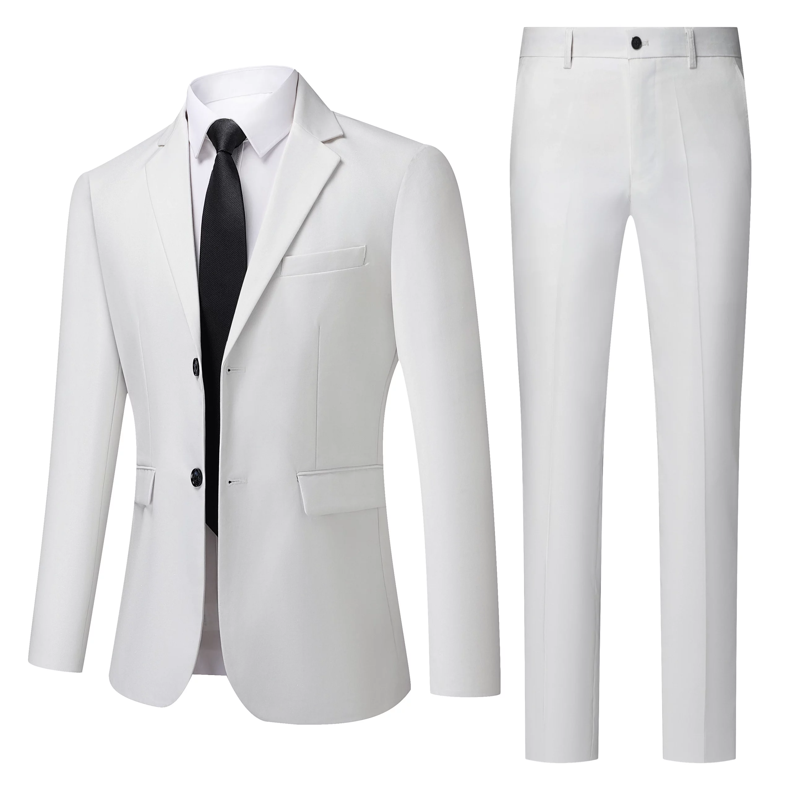 Home product Men’s White High-End Suit Two-Piece Suit Four Seasons Business Formal Wear Anti-Wrinkle Non-Stick Wool Suit Workplace Work Cloth